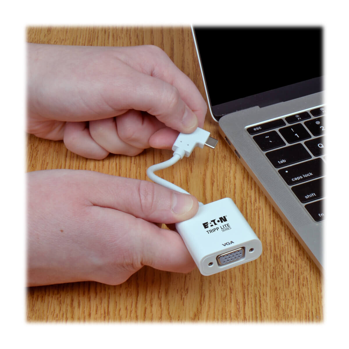 The plug-and-play USB Type-C to VGA cable requires no software or drivers to download and install. Just connect the right-angle USB-C plug to the USB-C or Thunderbolt 3 port on a source device that supports USB DisplayPort Alternate Mode. The six-inch adapter fits into your laptop bag, purse or briefcase for connecting to VGA displays anywhere. It’s backward compatible with previous USB generations, so you can use it with legacy equipment.